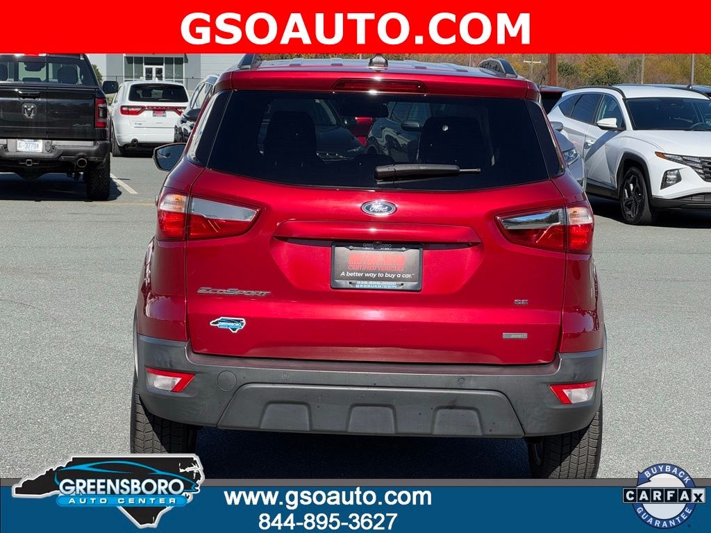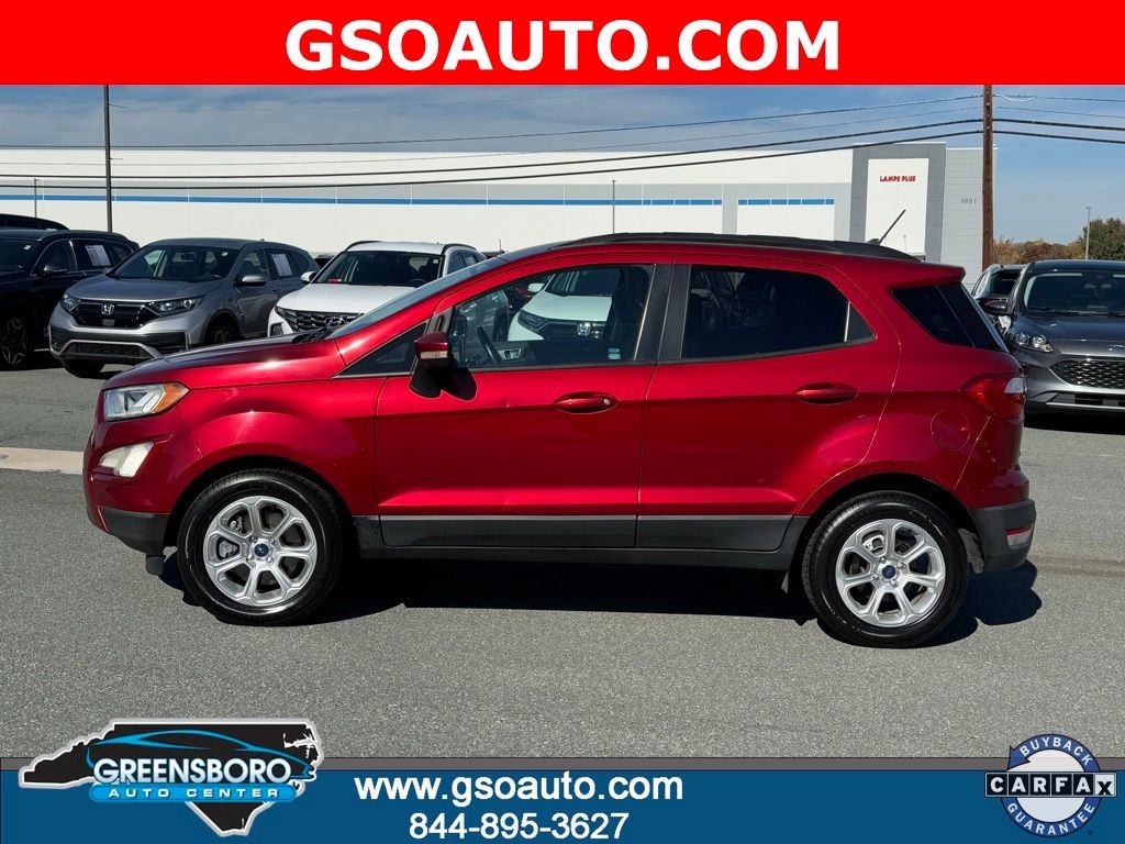 Certified. Ruby Red 2018 Ford EcoSport SE FWD 6-Speed Automatic EcoBoost 1.0L I3 GTDi DOHC Turbocharged VCT FULLY DETAILED **, FRESH OIL CHANGE **, SAFETY INSPECTED **, New Arrival, EcoSport SE, 4D Sport Utility, EcoBoost 1.0L I3 GTDi DOHC Turbocharged VCT, 6-Speed Automatic, FWD, Ruby Red, Ebony Black Cloth, 4-Wheel Disc Brakes, 6 Speakers, ABS brakes, Air Conditioning, Alloy wheels, AM/FM radio: SiriusXM, AppLink/Apple CarPlay and Android Auto, Automatic temperature control, Axle Ratio: 3.44, Bumpers: body-color, Compass, Delay-off headlights, Driver door bin, Driver vanity mirror, Dual front impact airbags, Dual front side impact airbags, Electronic Stability Control, Emergency communication system: SYNC 3 911 Assist, Equipment Group 200A, Exterior Parking Camera Rear, Front anti-roll bar, Front Bucket Seats, Front Center Armrest, Front fog lights, Front reading lights, Front wheel independent suspension, Fully automatic headlights, Heated front seats, Illuminated entry, Knee airbag, Leather Shift Knob, Leather steering wheel, Low tire pressure warning, Occupant sensing airbag, Outside temperature display, Overhead airbag, Overhead console, Panic alarm, Passenger door bin, Passenger vanity mirror, Power door mirrors, Power driver seat, Power steering, Power windows, Radio data system, Radio: AM/FM Stereo w/MP3 Capable, Rear Parking Sensors, Rear seat center armrest, Rear side impact airbag, Rear window defroster, Rear window wiper, Remote keyless entry, Roof rack: rails only, SiriusXM Radio, Speed control, Speed-sensing steering, Split folding rear seat, Steering wheel mounted audio controls, SYNC 3 Communications & Entertainment System, Tachometer, Telescoping steering wheel, Tilt steering wheel, Tire Inflator & Sealant Kit, Traction control, Trip computer, Turn signal indicator mirrors, Unique Cloth Heated Bucket Seats, Variably intermittent wipers, Wheels: 16" Shadow Silver-Painted Aluminum.