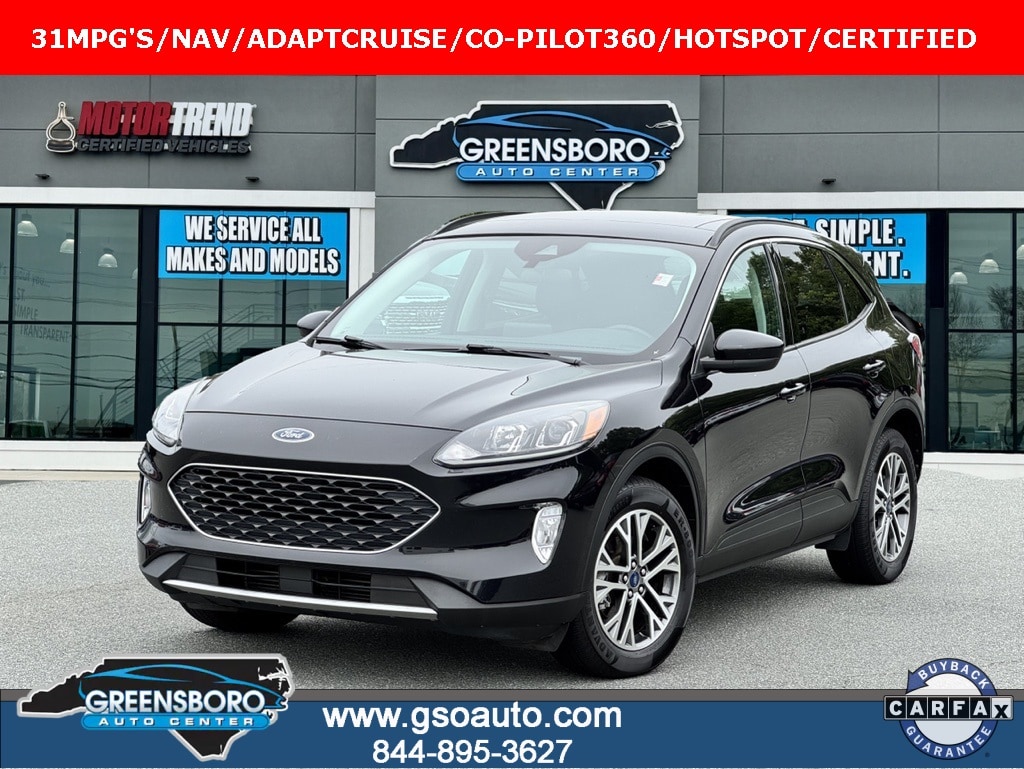 Certified. Black Metallic 2021 Ford Escape SEL AWD 8-Speed Automatic 1.5L EcoBoost CLEAN CARFAX / NO ACCIDENTS REPORTED **, BACK UP CAMERA **, BLUETOOTH / HANDS FREE CELL PHONE **, FULLY DETAILED **, FRESH OIL CHANGE **, SAFETY INSPECTED **, SUNROOF / MOONROOF **, MOTOR TREND CERTIFIED FEATURING - Lifetime Powertrain Limited Warranty, 2 Years Complimentary Maint, New Arrival, .18" ALUMINUM WHEELS .225/60R18 100H A/S BSW TIRES PANORAMIC VISTA ROOF 1,495.00 TIRE INFT/SLNT KIT NO SPR INC FORD CO-PILOT360 ASSIST+ 700.00 .VOICE-ACTV TOUCH-SCR NAV SYS .ADP CRZ CTRL W/STOP N GO DAYTIME RUNNING LAMPS (DRL), FUNCTIONAL AUTO START STOP TECH BLIS W/CROSS-TRAFFIC ALERT FORD CO-PILOT360 FORDPASS CONNECT 4GWI-FI HOTSPOT TELEMATICS MODEM INTELLIGENT ACCESS W/PUSH BUTTON START REAR VIEW CAMERA REMOTE START SYSTEM REVERSE SENSING SYSTEM SECURICODE KEYLESS KEYPAD SIRIUSXM - SVC N/A AK&HI SYNC3 8" SCRN W/APPLINK SAFETY/SECURITY ADVANCETRAC WITH RSC AIRBAG - DRIVER KNEE AIRBAGS - DUAL STAGE FRONT AIRBAGS - FRONT SEAT MOUNTED SIDE IMPACT AIRBAGS - SAFETY CANOPY LATCH CHILD SAFETY SYSTEM PERSONAL SAFETY SYSTEM SECURILOCK ANTI-THEFT SYS SOS POST-CRASH ALERT SYS TIRE PRESSURE MONIT SY, EXTERIOR ACTIVE GRILLE SHUTTERS DUAL EXHAUST CHROME TIPS EASY FUEL CAPLESS FILLER FOG LAMPS HEADLAMP COURTESY DELAY HEADLAMPS - AUTO HALOGEN LED SIGNATURE LIGHTING MIRRORS-HTD/POWER GLASS, MANUAL FOLD PRIVACY GLASS - REAR DOORS REAR INT WIPER/WASH/DFRST REAR SPOILER ROOF RACK SIDE RAILS TAILLAMPS-LED INTERIOR 1TOUCH UP/DOWN FRT/RR WIN ACTIVEX SEATING MATERIAL DUAL ILLUM VIS VANITY MIRR DUAL ZONE AUTO CLIMATE CTL HTD FRT SEATS - 10-WAY PWR DRV & 4-WAY MANUAL PASS ILLUMINATED ENTRY SYSTEM POWERPOINTS - 12V SPLIT FOLD/SLIDE REAR SEAT STR WHL-HTD & PREMIUM WRPD USB A (1) AND C (1), Escape SEL, 4D Sport Utility, 1.5L EcoBoost, 8-Speed Automatic, AWD, Black Metallic, Ebony Premium Synthetic, 3.81 Axle Ratio, 4-Wheel Disc Brakes, 6 Speakers, ABS brakes, Adaptive Cruise Control w/Stop-and-Go, Black Roof-Rack Side Rails, Dual front impact airbags, Dual front side impact airbags, Emergency communication system: SYNC 3 911 Assist, Equipment Group 301A, Ford Co-Pilot360 Assist+, FordPass Connect, Front anti-roll bar, Knee airbag, Low tire pressure warning, Occupant sensing airbag, Overhead airbag, Panoramic Vista Roof, Rear anti-roll bar, Speed Sign Recognition, SYNC 3 Communications & Entertainment System, Voice-Activated Touchscreen Navigation System.