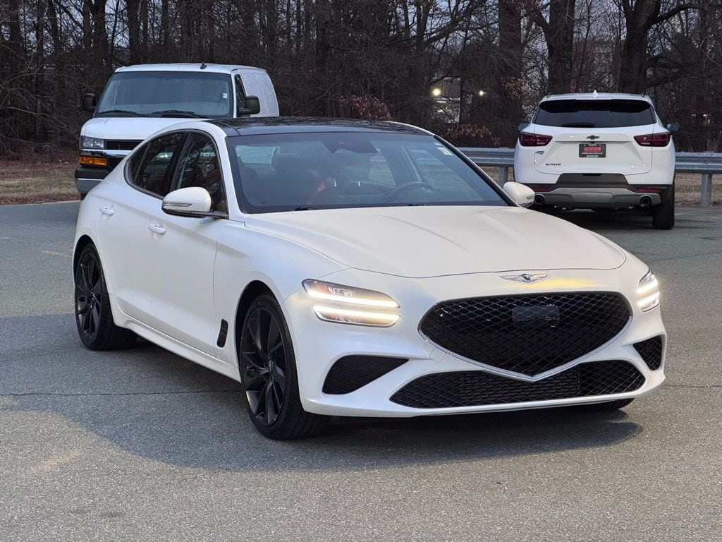 Certified. Verbier White 2023 Genesis G70 2.0T RWD 8-Speed Automatic with SHIFTRONIC I4 ONE OWNER **, BACK UP CAMERA **, BLUETOOTH / HANDS FREE CELL PHONE **, FULLY DETAILED **, FRESH OIL CHANGE **, SAFETY INSPECTED **, New Arrival, G70 2.0T, 4D Sedan, I4, 8-Speed Automatic with SHIFTRONIC, RWD, Verbier White, Obsidian Blk/Sevilla Red, 4-Way Power Lumbar Front Passenger Seat, 4-Wheel Disc Brakes, 6 Speakers, ABS brakes, Acoustic Front Door Glass, Alloy Pedals, Android Auto & Apple CarPlay, Anti-whiplash front head restraints, Auto High-beam Headlights, Dark Chrome Grille & Daylight Opening Trim, Delay-off headlights, Dual front impact airbags, Dual front side impact airbags, Emergency communication system: Genesis Connected Services, Exterior Parking Camera Rear, Forward & Reverse Parking Distance Warning, Four wheel independent suspension, Front anti-roll bar, Front Passenger Seat Walk-In Device, Fully automatic headlights, Garage door transmitter: HomeLink, Heated front seats, Heated Multi-Adjustable Front Bucket Seats, Illuminated entry, Integrated Memory System (IMS), Knee airbag, Leather Seating Surfaces, Low tire pressure warning, Navigation System, Occupant sensing airbag, Option Group 02, Overhead airbag, Panic alarm, Power driver seat, Power Folding ECM Outside Mirrors, Power Telescoping Steering Wheel, Radio: AM/FM/SiriusXM/HD Lexicon Prem Audio System, Rain-Sensing Wipers, Rear anti-roll bar, Remote keyless entry, Security system, Speed-Sensitive Wipers, Split folding rear seat, Sport Aluminum Trim, Sport Prestige Package, Steering wheel mounted audio controls, Tachometer, Telescoping steering wheel, Traction control, Trip computer, Variably intermittent wipers, Ventilated Front Seats, Wheels: 19" x 8.0J Fr & 19" x 8.5J Rr Sport Alloy, Wide Sunroof, Wireless Device Charging.