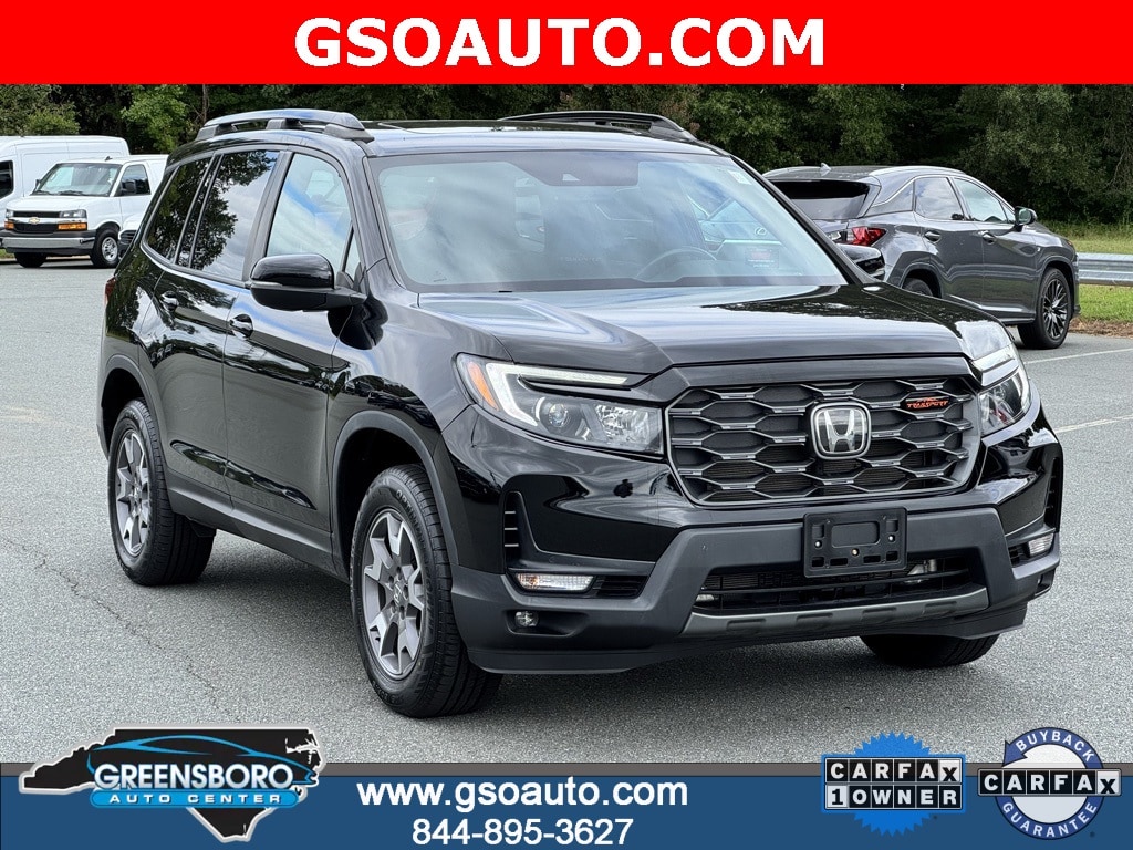 Certified. Black 2022 Honda Passport TrailSport AWD 9-Speed Automatic 3.5L V6 24V SOHC i-VTEC New Arrival, Back-Up Camera Blind Spot Information (BSI) System Blind Spot Collision Mitigation Braking System (CMBS) + FCW and Cross Traffic Monitor Collision Mitigation-Front Tire Specific Low Tire Pressure Warning Dual Stage Driver And Passenger Front Airbags Curtain 1st And 2nd Row Airbags Airbag Occupancy Sensor Rear Child Safety Locks Outboard Front Lap And Shoulder Safety Belts -inc: Rear Center 3 Point, Height Adjusters and Pretensioners Side Impact Beams Cross Traffic Monitor Collision Mitigation Braking System (CMBS) + FCW Front And Rear Parking Sensors Dual Stage Driver And Passenger Seat-Mounted Side Airbags, added features Black 215-Watt Audio System with 7 Speakers Leather-Trimmed Seats with Orange Stitching Heated Front Bucket Seats 18" Machine-Finish Alloy Wheels 245/60R18 105H AS Tires (rugged Design) TBD GVWR 4.334 Axle Ratio 9-Speed Automatic Transmission 3.5L V6 24-Valve SOHC i-VTEC Engine CARB-Certified LEV3-ULEV125 Emissions System, Perimeter Alarm Carpet Floor Trim 2 Seatback Storage Pockets Driver And Front Passenger Armrests Front Center Armrest and Rear Center Armrest w/Storage Manual Adjustable Rear Head Restraints Digital/Analog Appearance Outside Temp Gauge Systems Monitor Delayed Accessory Power Instrument Panel Bin, Interior Concealed Storage, Driver / Passenger And Rear Door Bins Cargo Space Lights Cargo Area Concealed Storage Trunk/Hatch Auto-Latch Engine Immobilizer 3 12V DC Power Outlets Air Filtration Adaptive Day-Night Auto-Dimming Rearview Mirror Full Carpet Floor Covering -inc: Vinyl/Rubber Front And Rear Floor Mats Immobilizer 3 12V DC Power Outlets and 1 120V AC Power Outlet Full Floor Console w/Covered Storage, Mini Overhead Console w/Storage, 3 12V DC Power Outlets and 1 120V AC Power Outlet Driver And Front Passenger Armrests Front Center Armrest and Rear Center Armrest Driver Information Center Distance Pacing, Passport TrailSport, 4D Sport Utility, 3.5L V6 24V SOHC i-VTEC, 9-Speed Automatic, AWD, Black, Black Leather, Blind Spot Information (BSI) System warning, Electronic Stability Control, Forward collision: Collision Mitigation Braking System (CMBS) + FCW mitigation, Lane departure: Lane Keeping Assist System (LKAS) active, Navigation system: Honda Satellite-Linked Navigation System.