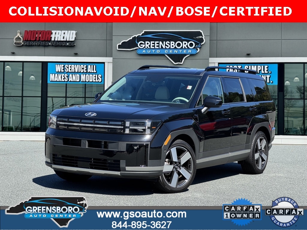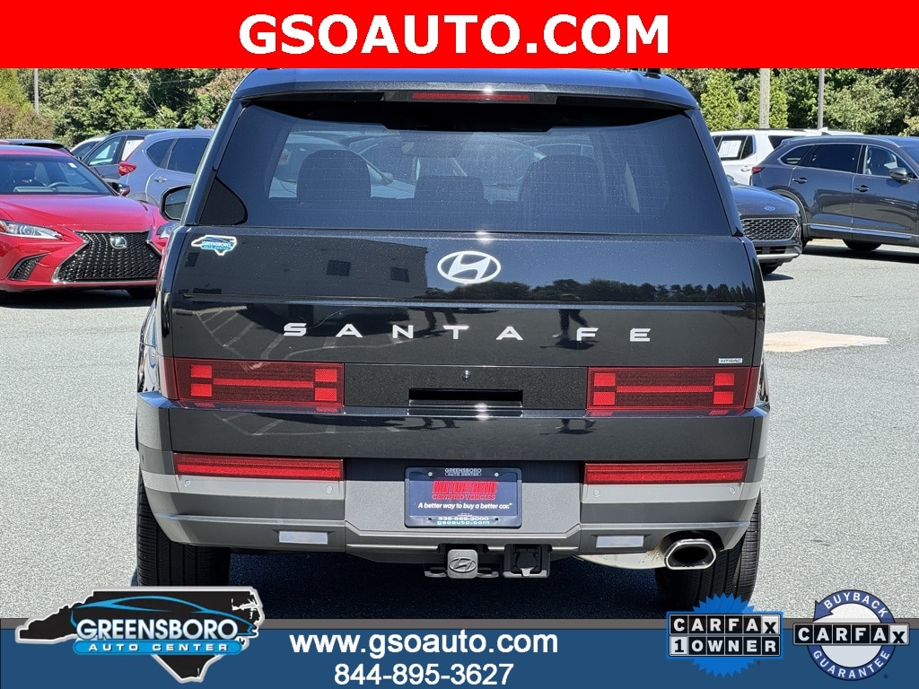 Certified. Phantom Black 2024 Hyundai Santa Fe Limited AWD Shiftronic 2.5L I4 New Arrival, Forward Collision-Avoidance Assist Blind-Spot Collision Warning Rear Cross-Traffic Collision-Avoidance Assist Parking Collision-Avoidance Assist - Reverse Lane Following Assist / Lane Keeping Assist Rear Occupant Alert Forward Attention Warning Park Distance Warning - Forward/Side/Reverse Blind-Spot View Monitor POWERTRAIN TECHNOLOGY 2.5L Turbocharged 4-Cylinder Engine w/ GDI and MPI 8-speed Wet Dual Clutch Transmission w/ Paddle Shifters HTRAC AWD Idle Stop & Go (ISG) Electronic Parking Brake w/ Auto Hold EXTERIOR 20" Alloy Wheels LED Headlights, Tail Lights, & Daytime Running Lights Power Folding Heated Side Mirrors w/ Turn Signal Indicators Dual-Pane Sunroof Roof Side Rails Power Liftgate w/ Extra Wide Opening COMFORT & CONVENIENCE Proximity Key w/ Push Button Start Dual Auto Temperature Control w/ 2nd & 3rd Row Air Vents Remote Smart Parking Assist Surround View Monitor Highway Driving Assist UV-C Sanitizer Compartment Leather-Trimmed Seats Power Front Seats Memory Driver's Seat Heated Front and 2nd Row Seats Ventilated Front Seats 60/40 Split Folding 2nd Row Seats 50/50 Split Folding 3rd Row Seat, Heated Steering Wheel Manual Rear Side Window Sunshade Auto-Dimming Rearview Mirror w/ HomeLink Wireless Phone Charger / AC Power Outlet Front, 2nd & 3rd Row USB Charging Ports 12.3" Digital Instrument Cluster 12.3" Navigation System [w/ AM/FM/HD Radio] Bose Premium Audio Wireless Android Auto & Apple CarPlay Digital Key SiriusXM w/ 90-Day Platinum trial subscription; Not Available in AK & HI Bluelink+ All-Inclusive Connected Services (enrollment required) Bluelink+ Map & Multimedia Over-the-Air Updates (3-yr Complimentary Service) Temporary Spare Tire Full Tank of Fuel, AWD, Gray Leather, 3rd row seats: bench, 4-Wheel Disc Brakes, ABS brakes, Apple CarPlay & Android Auto, Dual front impact airbags, Dual front side impact airbags, Emergency communication system, Front anti-roll bar, Heated & Ventilated Front Bucket Seats, Heated rear seats, Knee airbag, Leather Seat Trim, Low tire pressure warning, Occupant sensing airbag, Overhead airbag, Power passenger seat, Rain sensing wipers, Rear anti-roll bar, Rear side impact airbag, Rear window wiper, Telescoping steering wheel, Tilt steering wheel, Trip computer, Variably intermittent wipers.