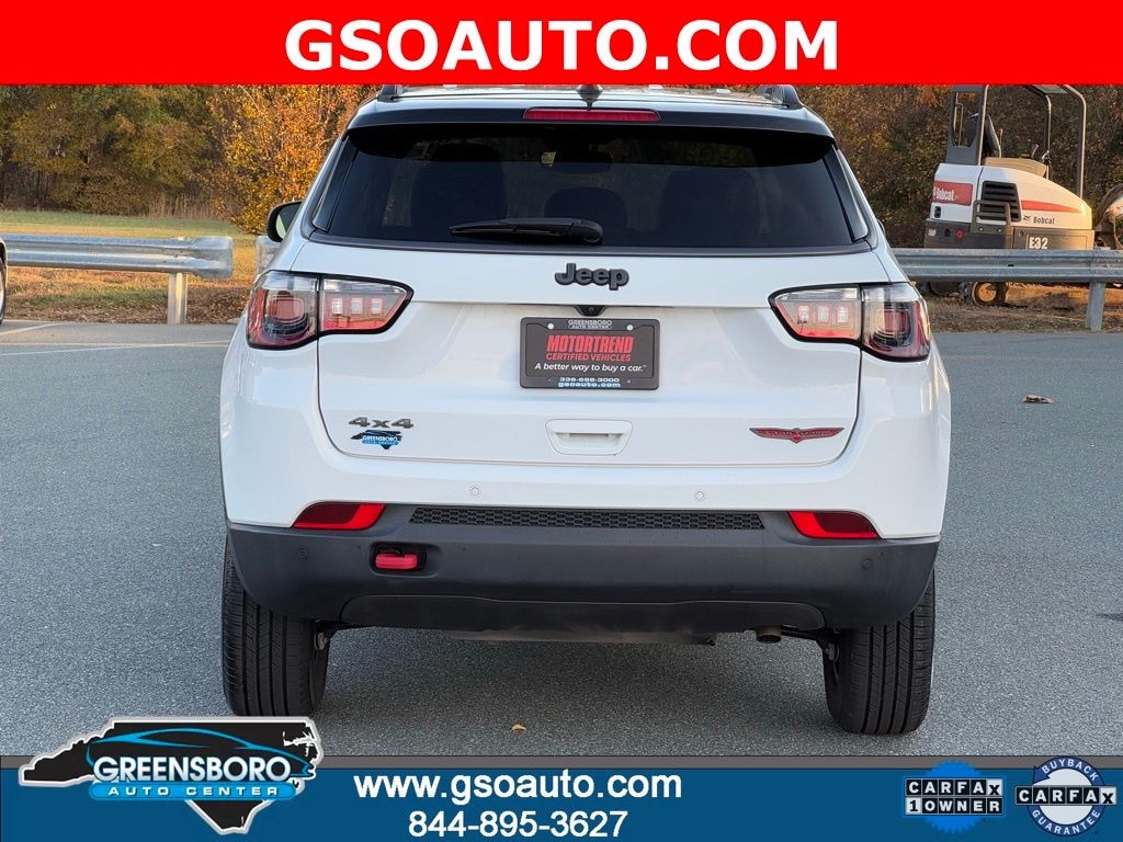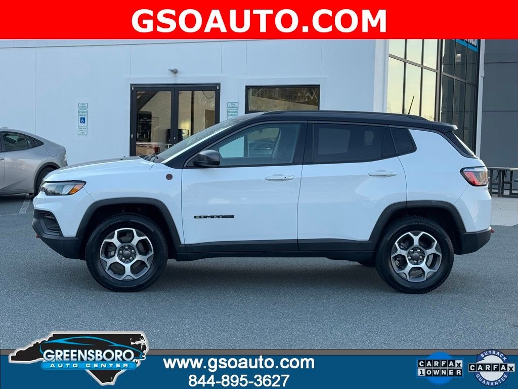 Certified. Bright White Clearcoat 2022 Jeep Compass Trailhawk 4WD 9-Speed 948TE Automatic 2.4L I4 BACK UP CAMERA **, BLUETOOTH / HANDS FREE CELL PHONE **, FULLY DETAILED **, FRESH OIL CHANGE **, SAFETY INSPECTED **, New Arrival, Advanced Multistage Front Air Bags Supplemental SideCurtain Front and Rear Air Bags FullSpeed ForwardCollision Warning Plus BlindSpot and CrossPath Detection Active LaneManagement System Pedestrian / Cyclist Emergency Braking Advanced BrakeAssist AutomaticDimming RearView Mirror Jeep Wave Membership (Retail Sales/50 States Only) RainSensitive / Intermittent Windshield Wipers Adaptive CruiseControl with Stop and Go Security Alarm OffRoad Suspension Rear Red TowHook SelecTerrain System HillStart Assist Hill Descent Control Electronic Stability Control Electronic Roll Mitigation Trailer Sway Damping Fuel Tank SkidPlate Shield Front Suspension SkidPlate RemoteProximity KeylessEntry PushButton Start ParkView Rear BackUp Camera FullSize Spare Tire INTERIOR FEATURES 10.1Inch Touchscreen Display SiriusXM with 6Month Radio Sub Call 8006432112 SiriusXM Guardian Connected Service w/Trial Period Apple CarPlay Google Android Auto Bluetooth Handsfree Phone and Audio 4G LTE WiFi Hot Spot with Trial Included SteeringWheelMounted Audio Controls 6 Speakers Rear 60/40 Folding Seat A/C with DualZone A, Trailhawk Convenience Group $1,415 Heated Front Seats RemoteStart System Heated Steering Wheel LeatherWrapped Steering Wheel 8Way Power Adjustable Driver Seat 2Way Power Lumbar Adjustable Driver Seat Reversible Carpet / Vinyl CargoMat Second Row ChargeOnly USB Type A and C Ports 115Volt Auxiliary PowerOutlet Windshield Wiper DeIcer, Compass Trailhawk, 4D Sport Utility, 2.4L I4, 9-Speed 948TE Automatic, 4WD, Bright White Clearcoat, Ruby Red/Black Cloth, 115V Auxiliary Power Outlet, 2nd Row USB Type A/C Charge Only, 4-Wheel Disc Brakes, ABS brakes, Anti-whiplash front head restraints, Dual front impact airbags, Dual front side impact airbags, Emergency communication system: SiriusXM Guardian, Front anti-roll bar, Heated Front Seats, Knee airbag, Leather Wrapped Steering Wheel, Low tire pressure warning, Occupant sensing airbag, Overhead airbag, ParkView Rear Back-Up Camera, Power 2-Way Driver Lumbar Adjust, Power Adjust 8-Way Driver Seat, Quick Order Package 2GE, Radio: Uconnect 5 w/10.1" Display, Rear anti-roll bar, Remote Start System, Reversible Carpet/Vinyl Cargo Mat, Trailhawk Convenience Group, Vehicle Information Center, Windshield Wiper De-Icer.
