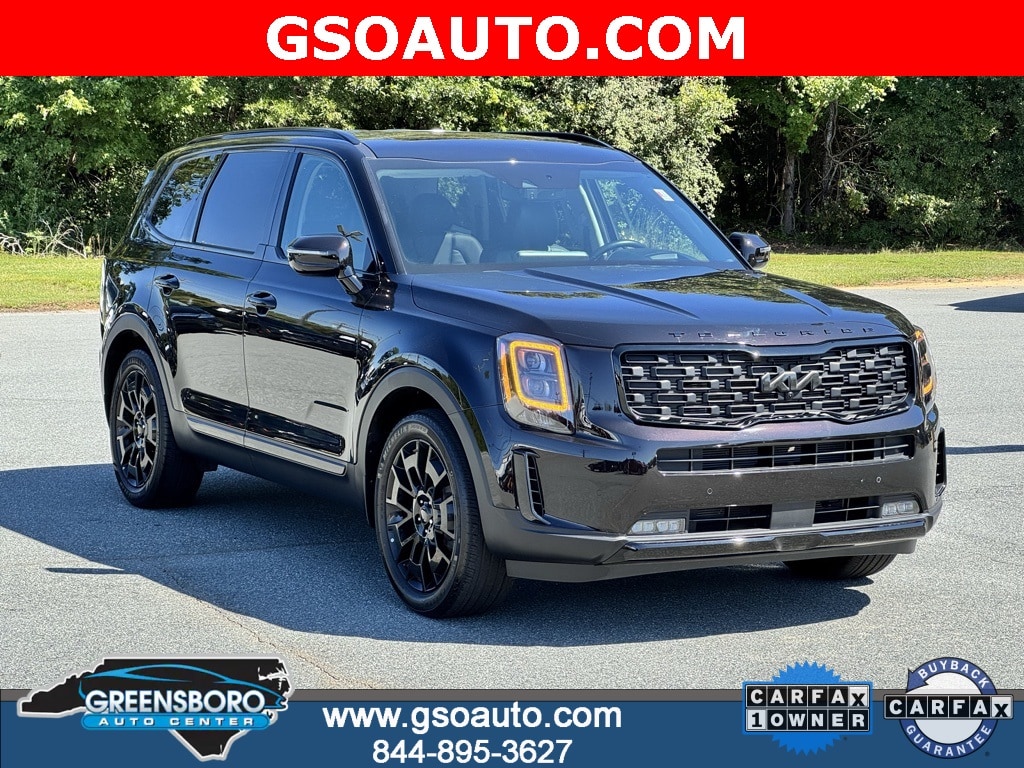 Certified. Black Copper 2022 Kia Telluride SX AWD 8-Speed Automatic 3.8L V6 DOHC New Arrival, Curtain 1st, 2nd And 3rd Row Airbags Cruise Control-Steering Assist Side Impact Beams Dual Stage Driver And Passenger Seat-Mounted Side Airbags Blind Spot Forward Collision-Avoidance Assist (FCA) Collision Mitigation-Front Driver Monitoring-Alert Collision Mitigation-Rear Parking Distance Warning Front And Rear Parking Sensors Aerial View Camera System Tire Specific Low Tire Pressure Warning Dual Stage Driver And Passenger Front Airbags Airbag Occupancy Sensor Driver Knee Airbag Outboard Front Lap And Shoulder Safety Belts -inc: Height Adjusters and Pretensioners Safe Exit Assist Power Rear Child Safety Locks Surround View Monitor Back-Up Camera Front Camera Left Side Camera Rear Cross-Traffic Collision Avoidance (RCCA) Right Side Camera Power Rear Child Safety Locks Back-Up Camera Highway Driving Assist (HDA), added features Front and Rear Gloss Black Finish Bumper Skid Plates Black Copper $495.00 Black Carpeted Floor Mats $210.00 Premium Nappa Leather Seat Trim 3.8L DOHC V6 with Dual CVVT Engine SX Prestige Package $2,300.00 Nightfall Edition Package $1,395.00 20" X 7.5" Exclusive Black Alloy Wheels 110V Inverter Heated and Ventilated Second Row Seats Gloss Black Finish Front and Rear Door Garnish Rain-Sensing Front Windshield Wipers Gloss Black Finish Roof Rails Head Up Display Premium Cloth Headliner and Pillar Trim Exclusive Black Fog Light Bezel Exclusive Black Headlight Bezels Gloss Black Finish Exterior Emblems Body Color Exterior Door Handles Black Finish Radiator Grille, Adaptive w/Traffic Stop-Go HVAC -inc: Underseat Ducts, Headliner/Pillar Ducts and Supplemental Cabin Heater Smart Cruise Control with Stop & Go (SCC w/S&G) Systems Monitor Remote Releases -Inc: Smart Liftgate Proximity Cargo Access Driver Seat Passenger Seat Front Center Armrest and Rear Seat Mounted Armrest Manual Tilt/Telescoping Steering Column Fixed 70-30 Split-Bench 3rd Row Seat Front, Manual Fold Into Floor and 3 Fixed Head Restraints Leather Steering Wheel Front Cupholder Rear Cupholder Compass Power Fuel Flap Locking Type Driver And Passenger Visor Vanity Mirrors w/Driver And Passenger Illumination, Driver And Passenger Auxiliary Mirror Find My Car Tracker System HomeLink Garage Door Transmitter Leather/Metal-Look Gear Shifter Material Leatherette Door Trim Insert Full Cloth Headliner Interior Trim -inc: Simulated Wood Instrument Panel Insert, Metal-Look Door Panel Insert, Piano Black Console Insert and Metal-Look Interior Accents Driver Foot Rest Illuminated Locking Glove Box HVAC -inc: Underseat Ducts and Headliner/Pillar Ducts Distance Pacing w/Traffic Stop-Go Cruise Control w/Steering Wheel Controls Memory Settings -inc: Door Mirrors.