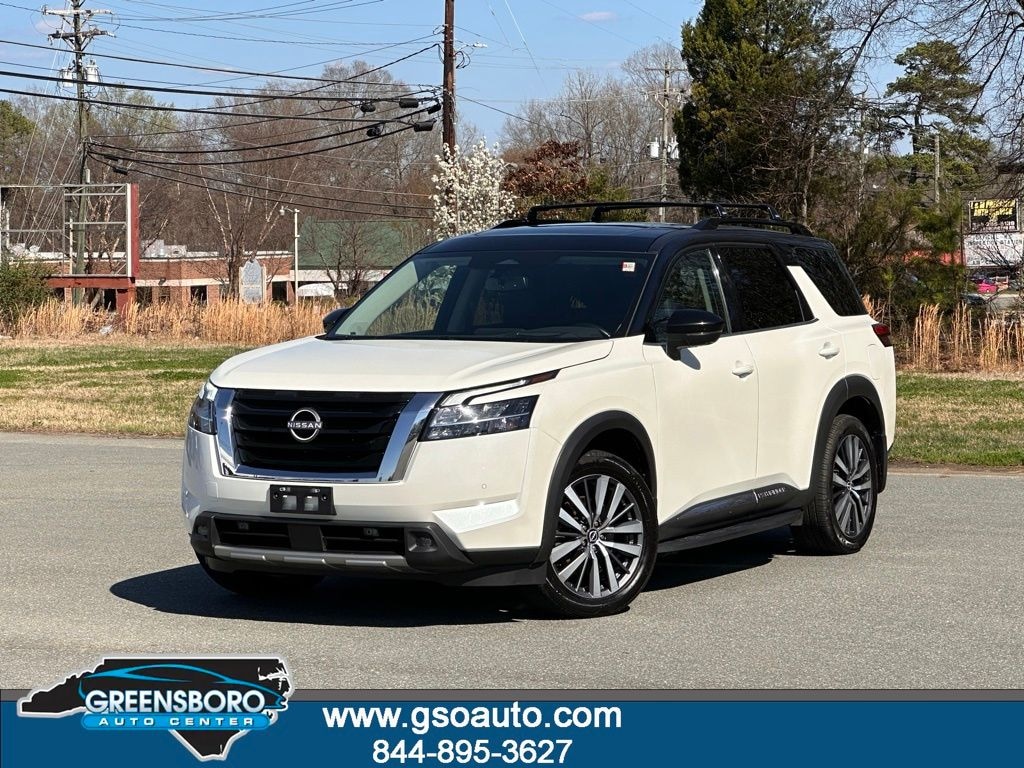 Certified. Pearl White Tricoat/Super Black 2022 Nissan Pathfinder Platinum 4WD 9-Speed Automatic V6 New Arrival, 4WD.